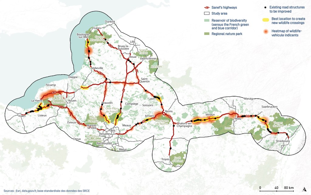 Contexte : Le réseau autoroutier représente un obstacle majeur pour la faune. Dans le cadre de sa stratégie RSE, la SANEF a souhaité restaurer les continuités écologiques. Ce projet a permis d’identifier les points de conflit et de développer un outil d’aide à la décision, fondé sur une méthode robuste et reproductible, pour orienter les actions à grande échelle.