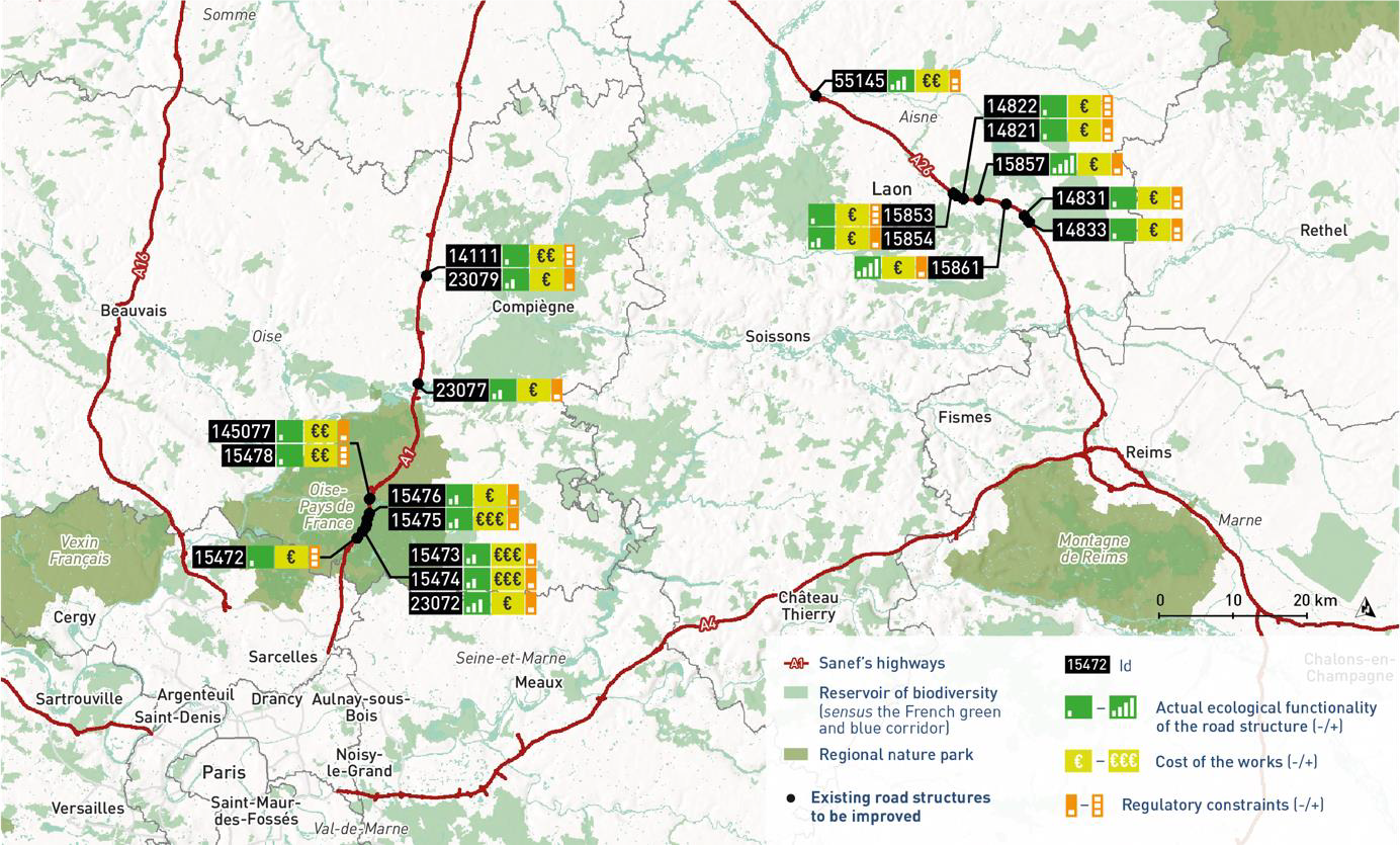 - 109 ouvrages routiers à optimiser pour améliorer la connectivité faunistique.